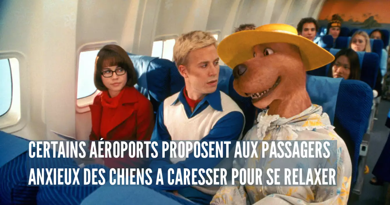 Dans certains aéroports du monde, notamment sur le continent américain et en Russie, des chiens ont rejoint l'équipage au sol. Ils ont un rôle thérapeutique, puisque leur mission est d'apaiser certains voyageurs tendus en se transformant en aimant à câlins ! Il paraît que l'effet relaxant est réel…