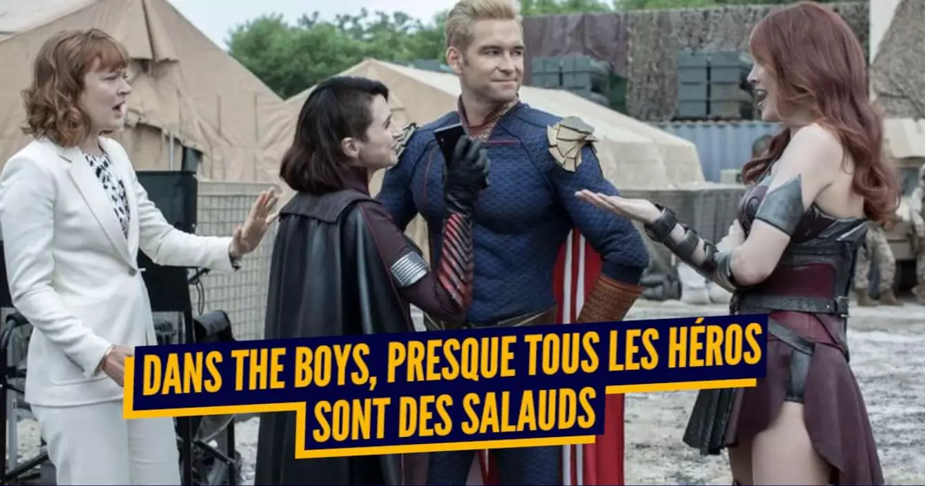 Les stars du moment. Ici c’est bien simple, à de rares exceptions près, les « superhéros » ont tous quelque chose à se reprocher, du viol à l’assassinat en passant par de la torture, des crimes de guerre, de la consommation de drogues sans oublier des meurtres racistes (une « superhéroïne » nazie est de la partie, pas une néo-nazie, non, une pur jus made in Allemagne, cru 1919) et de la manipulation de masse. Une charmante équipe dont le meneur, Homelander, est un taré mégalo inarrêtable. Au point que les justiciers costumés sont majoritairement des antagonistes, là où les vrais héros de la série sont des simples humains (aidés pour l’instant de quelques « super » repentis, sinon ils n’auraient aucune chance). Un gros pied-de-nez de sale gosse aux superhéros classiques.