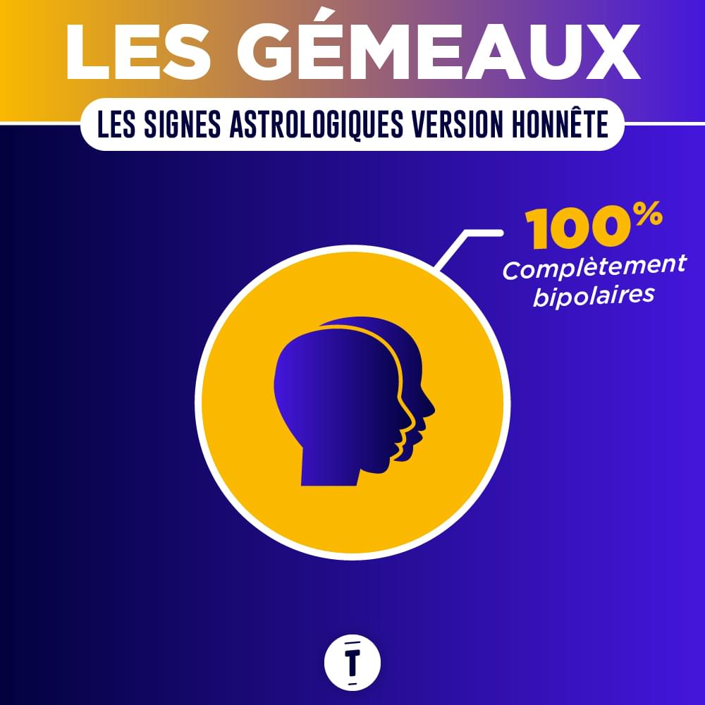 Les Gémeaux sont très très beaux. Ces personnes ont souvent été élues « plus beau mec/belle fille de la classe » en CE1, CE2 et CM1, ce qui est un record jamais égalé. Les Gémeaux correspondent parfaitement aux standards de beauté moderne. Leur seul point faible est leur manque de charme mais leur mâchoire est parfaitement dessinée pour rouler des pelles bien baveuses.