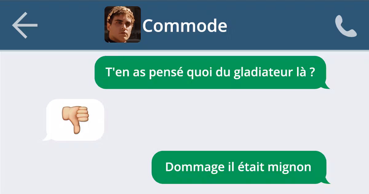 Durant l'Antiquité, les gens avaient le feu, les fringues et même la roue, mais globalement personne n'avait la chance d'avoir un téléphone intelligent (ou smartphone). Nous nous sommes donc fait un plaisir d'imaginer les textos que tous ces braves gens auraient pu s'envoyer si ça avait été le cas. Et certains sont plutôt olé-olé.
