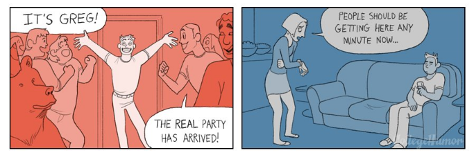 Le site CollegeHumor, que l'on aime tout particulièrement, nous a gratifié de petits dessins humoristiques sur les soirées. Parce qu'on rêve tous de soirées formidables, sauf que la réalité est très souvent différente, ces illustrations devraient vous parler.