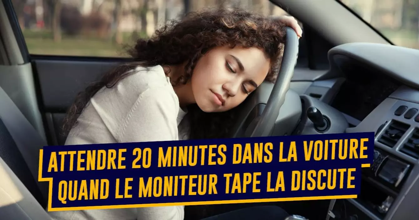 Attendre dans la voiture pendant que le moniteur discute avec Michel du PMU