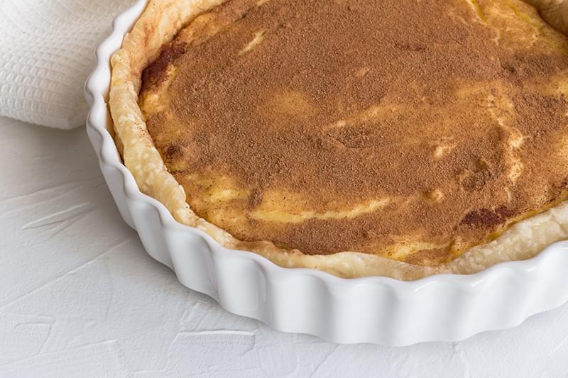 Le dessert le plus simple à faire au monde : des oeufs, du lait, du sucre qu'on mélange ensemble. On met le tout au four dans un plat, sans pâte. Naturellement pendant la cuisson, les oeufs vont descendre et former une pâte. Ajoutez simplement de la cannelle en sortie de cuisson et régalez-vous.