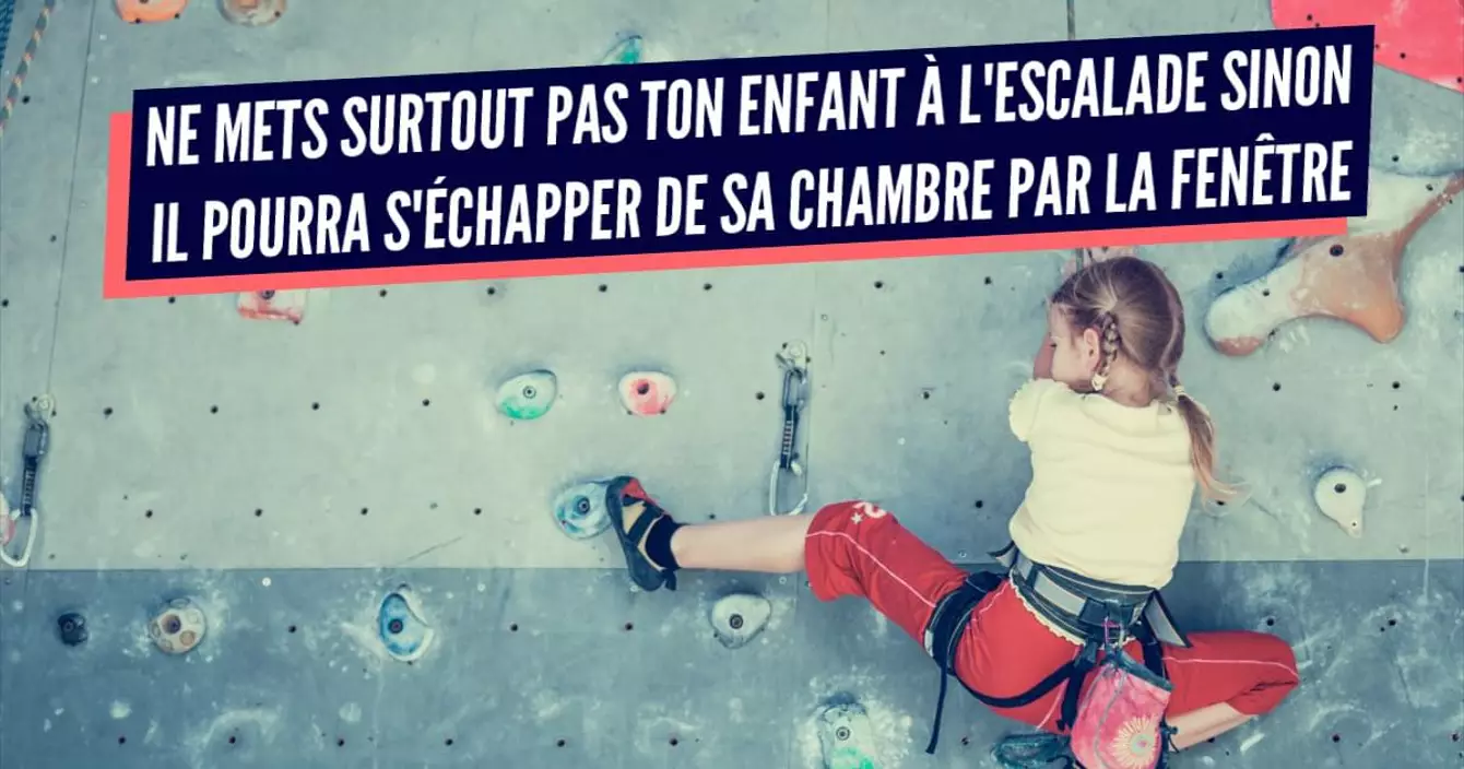 Super, comme ça tu lui laisses l’opportunité d’apprendre à faire le mur depuis sa chambre sans se casser la margoulette. Tu y réfléchiras à deux fois avant de le laisser pratiquer un sport qui pourra lui permettre de s’évader de prison.