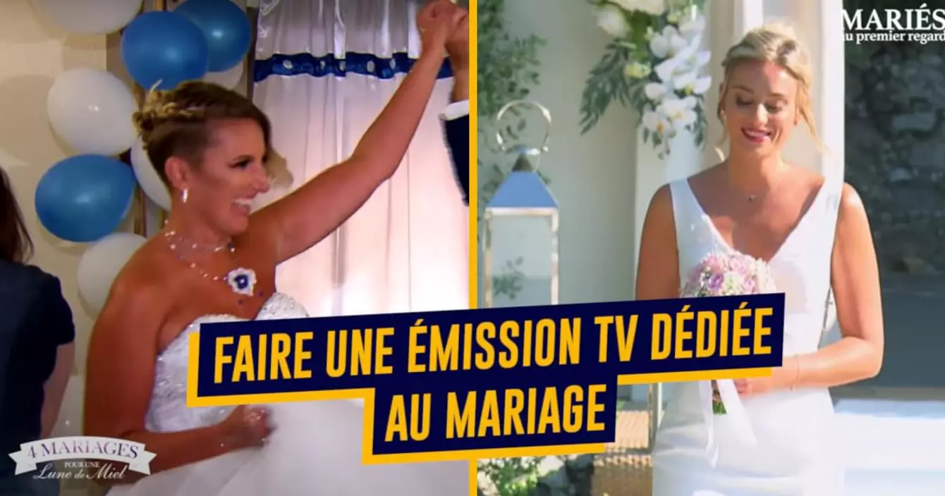 Pour ceux qui aiment la compet' et bitcher sur les autres mariés : ce sera « 4 mariages pour une lune de miel » (et si tu te démerdes bien, tu peux donc te faire financer ton mariage ET ton voyage de noce, stylé.). Pour les amateurs de sensations fortes et de gros défis : « Mariés au premier regard ». L'occasion de découvrir le jardin botanique de Gibraltar et ton mari/épouse le même jour. Trop bien.