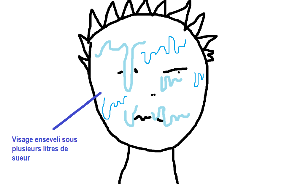 Analyse de Topito : tu as des problèmes de sudation sévère. Topito te conseille de disposer du papier buvard sur ton visage.