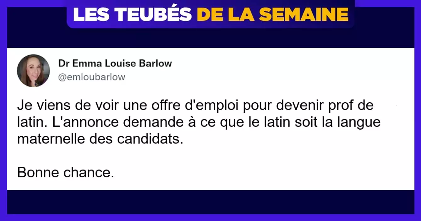 « Je viens de voir une annonce pour un poste de professeur de latin. L'annonce spécifiait que le latin devait être la langue maternelle des candidats. Bonne chance. »