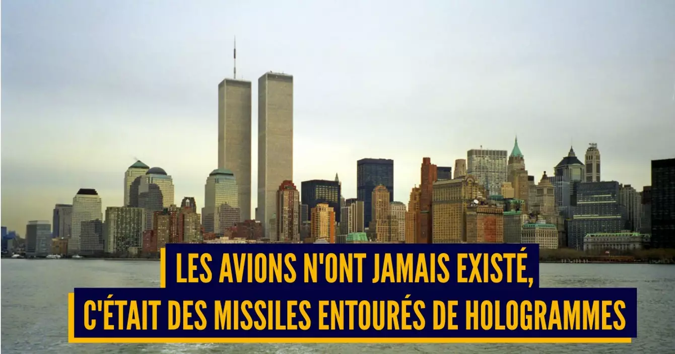 Voilà. Au bout d'un moment on va quand même pas s'emmerder. Si y'a un missile, pourquoi y'aurait pas QUE des missiles ? Les passagers présents dans les avions n'étaient sans aucun doute que des ectoplasmes, c'est bien plus logique comme interprétation que tout ce flan que les médias sionistes cherchent à nous faire avaler. Et j'exagère à peine, la thèse complotiste met en avant l'impossibilité que des avions rentrent dans les tours, c'est pourquoi c'était sans aucun doute des missiles entourés d'hologrammes afin de modifier la perception des vidéos qui ont été par la suite diffusées dans les médias.
