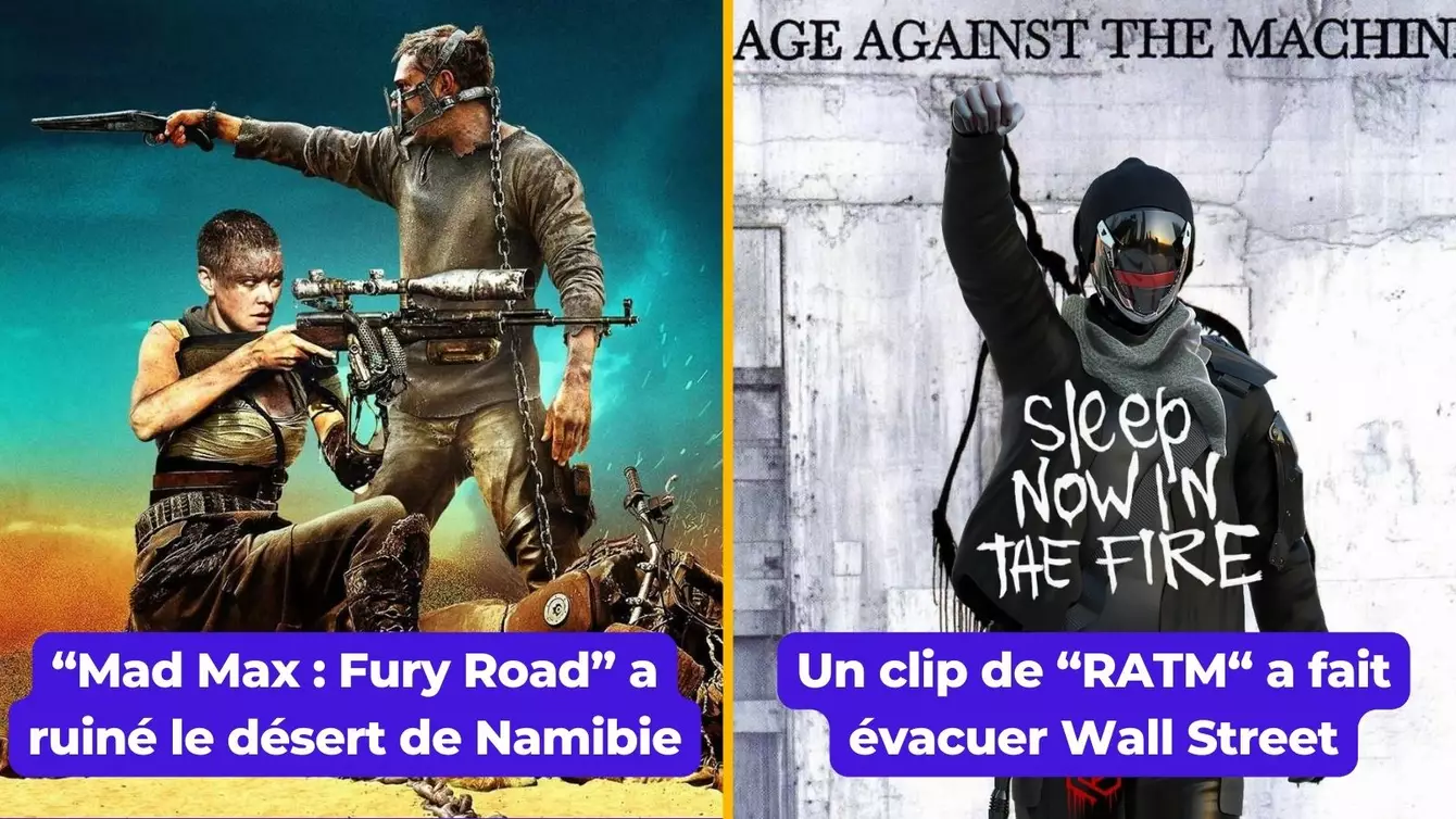 Vous l'ignorez peut-être mais le film Mad Max : Fury Road a été tourné dans le plus vieux désert du monde, à savoir le désert de Namibie. Le gros problème avec ce tournage c'est qu'en mettant plus d'une centaine de véhicules qui roulent super vite et en faisant péter des explosifs et des effets de pyrotechnie à tout va ça peut légèrement abîmer le terrain. Et c'est ce qui s'est passé, des scientifiques ont vraiment gueulé parce que le tournage avait ruiné l'écosystème très fragile du désert qui était resté jusqu'ici préservé.