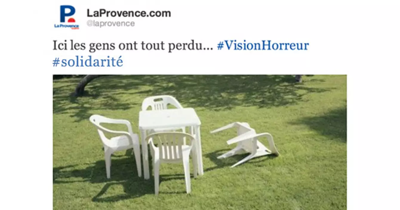 Le Sud-Est de la France vient donc d'être frappé d'un tremblement de terre d'une force de 5 sur l'échelle de Richter. Les journaux sont en émois: pas besoin d'aller jusqu'à Haïti pour couvrir le drame, ça sent l'aubaine. Bon il n'y a à priori aucun blessé et très peu ou pas de dégats, mais continuons d'en faire des caisses. Avec un peu d'imagination, on ne serait pas loin de ces tweets parodiques…