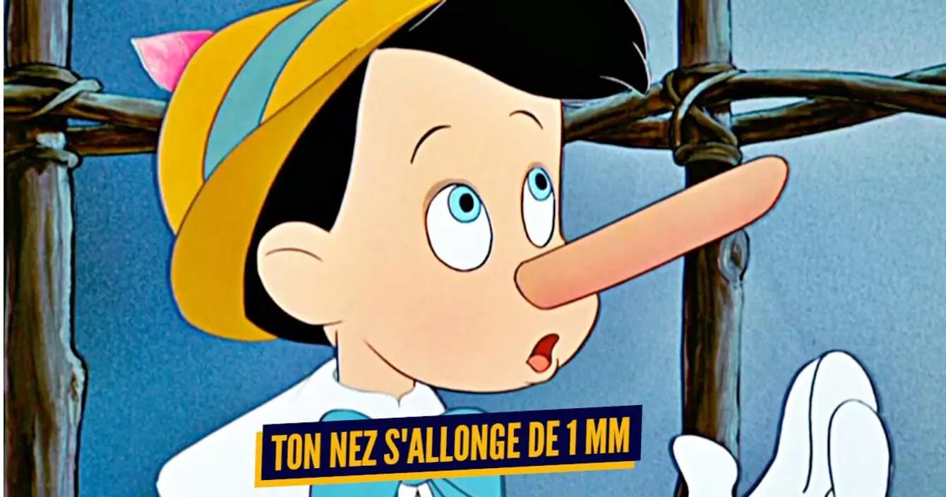 Vous connaissez tous l'histoire de Pinocchio et vous pensiez que ce n'était qu'une légende urbaine (enfin une légende Disney) sauf que ça part d'un fait scientifique un peu vrai quand même. Votre nez s'allonge de 1 millimètre quand vous mentez. Ça se voit pas à l’œil nu mais si vous mettez une loupe sur le nez de quelqu'un quand vous le soupçonnez de mentir peut-être que vous arriverez à le démasquer.