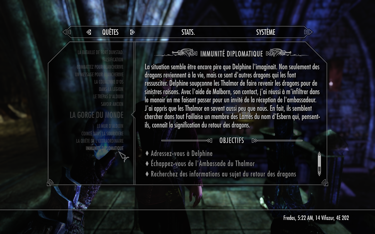 Accepter une quête ok (même si pour rappel on ne doit pas toutes les accepter) mais toujours dans le but de gagner une récompense. Ça ne sert à rien de suer du cul tout en manquant de crever pour obtenir un simple merci. Par contre une hache enchantée, des provisions rares ou un anneau qui empêche de se transformer en loup-garou quand on est atteint de lycanthropie là oui ça vaut le coup. Les récompenses de quêtes, encore un truc qu'on voudrait emprunter aux jeux vidéo.