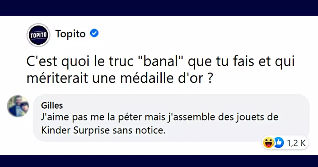 En ce moment, c'est les JO 2020 (les pires), et il est donc de bon ton de distribuer des médailles à tout va. On a décidé de s'y mettre nous aussi, mais on voulait donner des médailles pour des choses qui semblaient a priori trop banales, parce qu'il n'y a pas que les champions surentrainés qui ont droit à des récompenses. On vous a demandé votre avis sur Facebook et Twitter : quel truc banal que vous faites mérite une médaille ? Voici vos réponses.