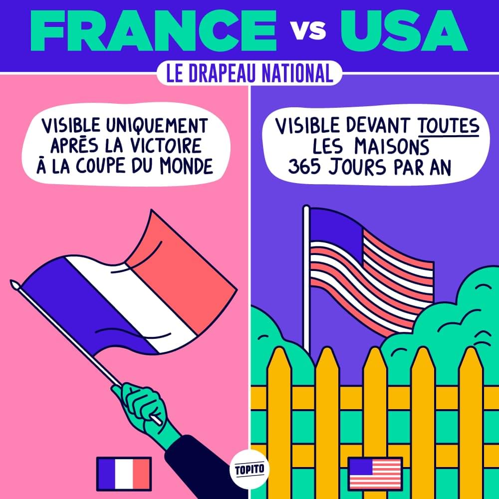 Les Américains aiment leur pays, et surtout aiment le montrer. Vraiment. Baladez-vous n'importe où dans le pays, et vous croiserez des drapeaux américains dans toutes les rues. Toutes. Sans aucune exception. Il n'y a absolument que là-bas, que ne pas afficher son amour démesuré pour sa patrie est chelou. Dans le reste du monde, foutre le drapeau de son pays dans son jardin, à chacun de ses balcons, sur son garage et le cul de sa voiture, ça fait plus flipper qu'autre chose.