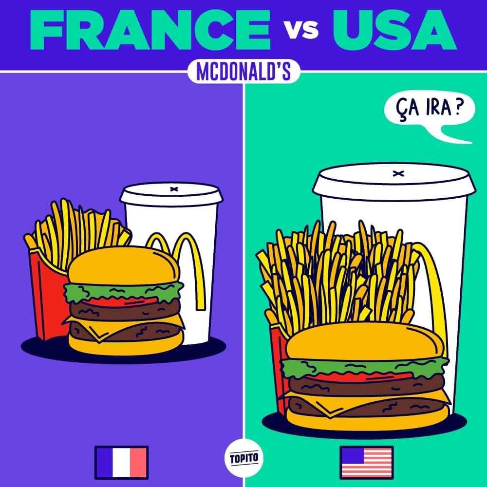 Au pays du XXL, un burger équivaut à 15 burgers partout ailleurs (j'extrapole à peine). Ils ne doivent pas bien comprendre quand ils vont dans un Mcdo à l'étranger… Quand le Menu Maxi Best of a la taille d'une amuse-gueule. Oupsie.
