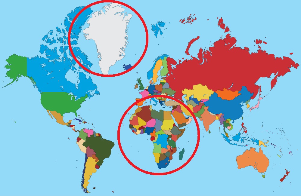 Le Groenland ne fait pas la taille de l'Afrique
