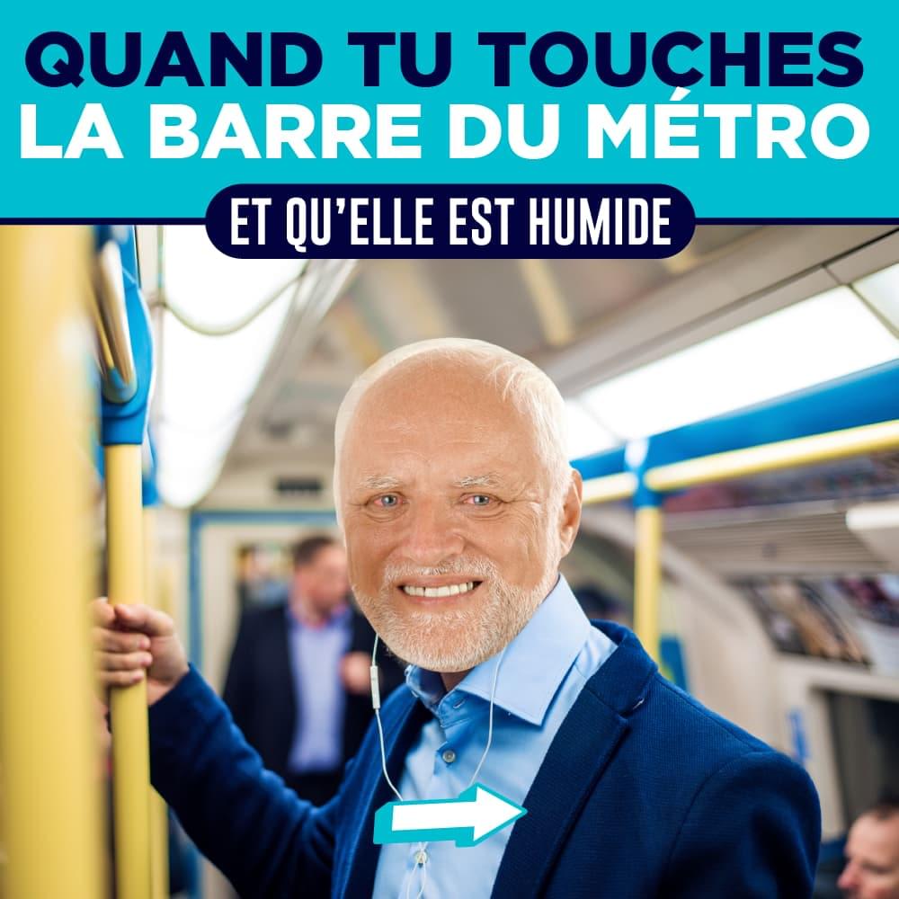 Quand tu touches sans faire exprès la main de quelqu'un d'autre sur la barre du métro