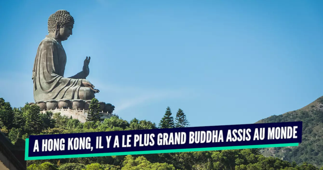 Déjà super grand, 34 mètres, cet impressionnant Buddha est de plus positionné sur un piédestal au sommet d'une colline, sur l'île de Lantau. Du coup, on le voit de loin !