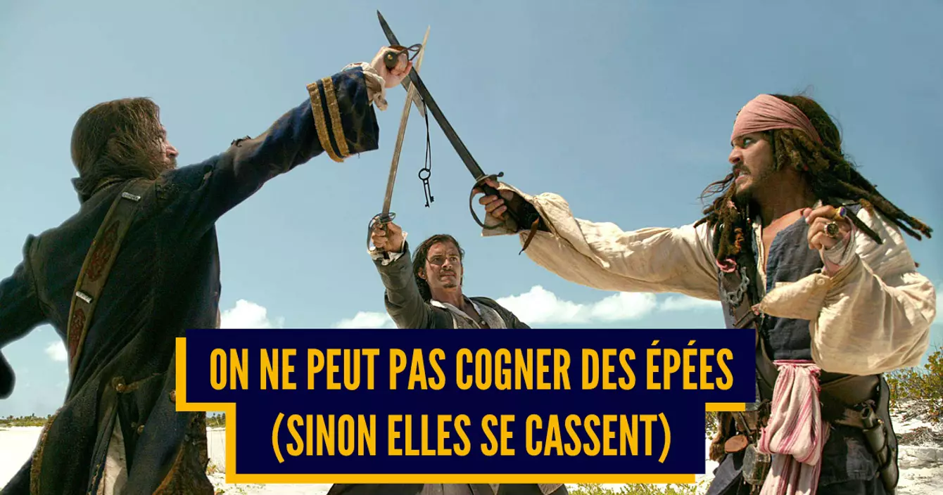 Dans tous les films de cape et d'épée, les duels consistent pour les belligérants à chercher la faille adverse en frappant et paradant avec sa propre épée, ce qui donne lieu à un concert de cling cling. Sauf que répéter cette opération ne peut mener qu'à foutre l'épée en l'air. En réalité, au Moyen-âge comme aujourd'hui en escrime, c'est le corps qui esquive et les parades sont rares. En tous les cas, aucun vrai combat à l'épée n'a jamais ressemblé à ce que nous montre le cinéma.