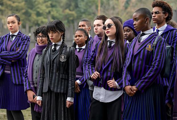Les personnages portent toujours des vêtements colorés pour que Mercredi se démarque