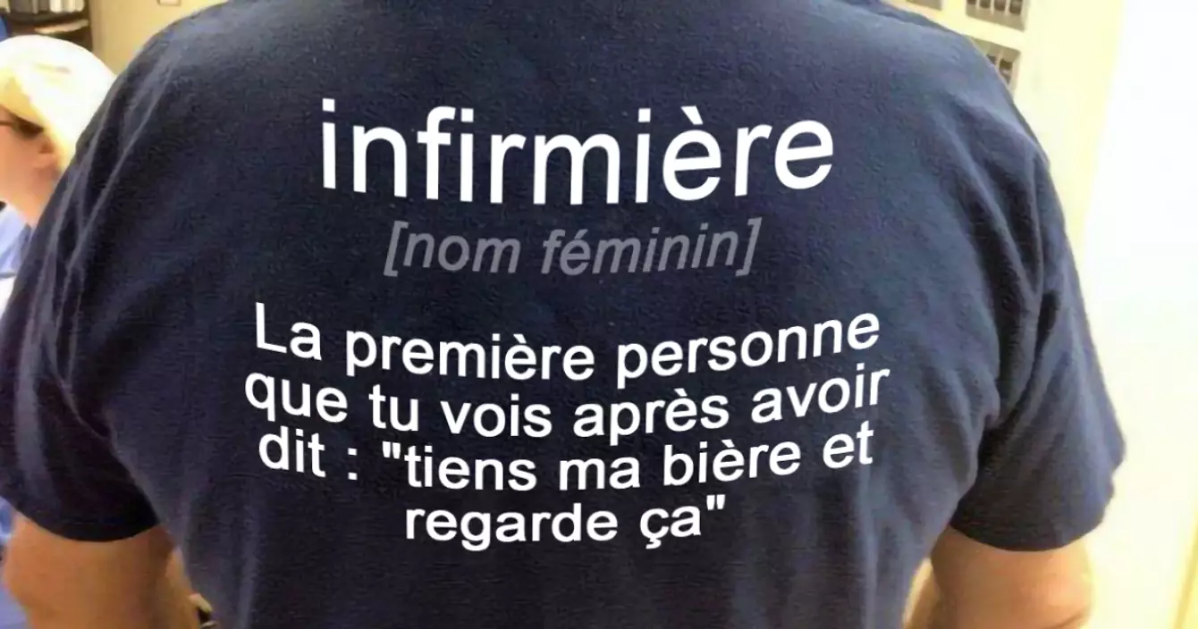 Définition de « Infirmier.e » : la première personne que tu vois après avoir dit : « tiens ma bière et regarde ce que je sais faire »