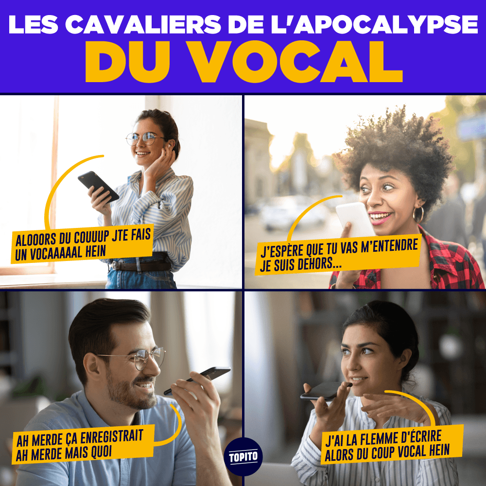 Il y a plein de raisons d'interdire les messages vocaux mais il faut avouer que c'est drôlement pratique. C'est simple, rapide, efficace et super pratique quand on marche dans la rue. Après évidemment, c'est toujours relou de recevoir un message de 3 minutes pour entendre « Ouais alors… Je te fais un vocal parce que je suis dans la rue… Je voulais juste te dire que du coup… Attends désolé y a du bruit dehors… Euhhhh… »
