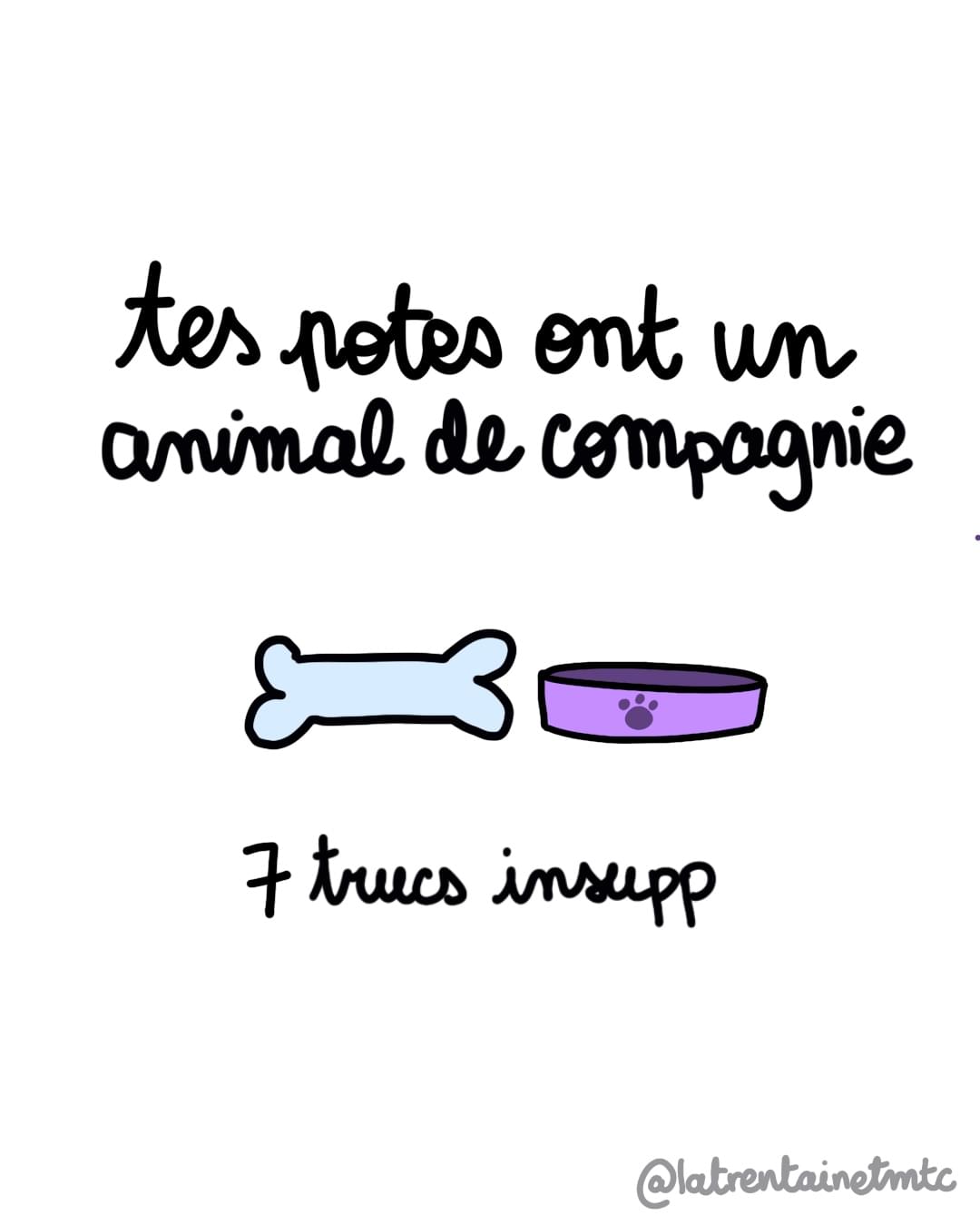Avoir un chien ou un chat est désormais devenu une étape incontournable de tout trentenaire qui se respecte et qui suis-je pour leur jeter la pierre ? Heureusement l'inégalable compte insta @LatrentaineTmtc nous remet les pendules à l'heure avec les travers bien relous des propriétaires parents d'animaux de compagnie, un peu trop impliqués dans leur éducation.