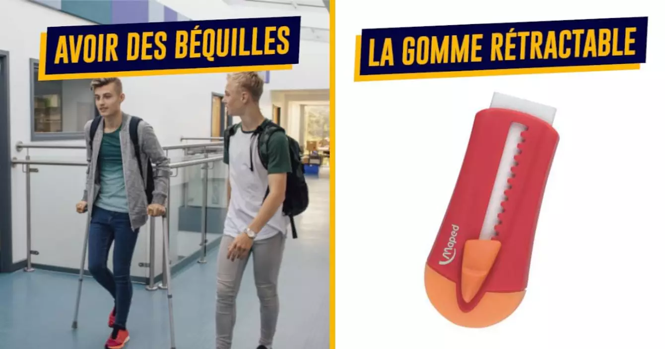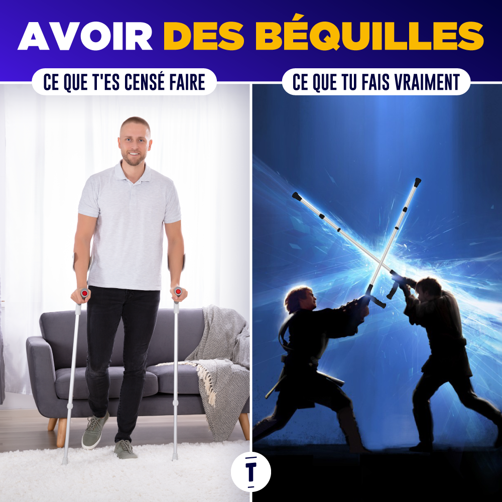 Avoir des béquilles quand on a 12 ans, c'est un peu comme devenir le roi de l'école. Déjà, on te laisse le droit de passer devant tout le monde pour aller manger et tu peux même y aller avec tes potes pour qu'ils portent ton plateau. Ensuite, tu es exempté de cours de sport pendant que tes potes courent 4x500m sous la pluie. Enfin, tu as dans ta poche la clé de l'ascenseur, celui qui est normalement réservé au personnel, et c'est tout un monde qui s'ouvre à toi.