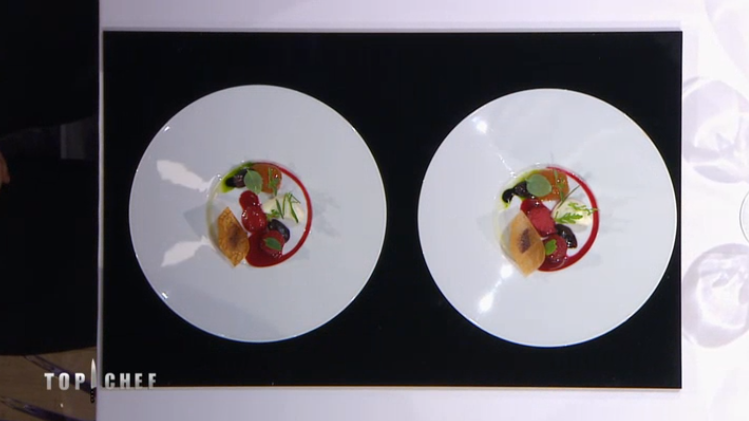 Paul Pairet doit d'abord choisir au visuel, et c'est l'assiette de Baptiste qui n'est pas sélectionné. Pour le reste, tout le monde s'en sort bien mais c'est Damien qui bat Maël de peu.