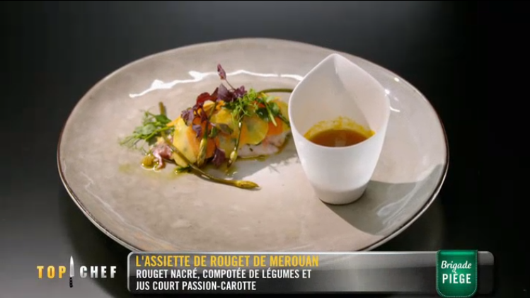 Le duel se fera sur un rouget (de Lille). Rouget/fruits de la passion et carotte pour le dabeur fou et toast de foie de rouget/fenouil pour le junior.