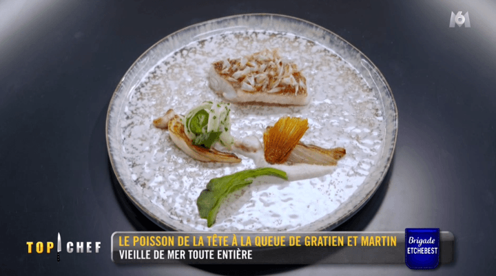 Alors calmez vous direct, on parle bien d'un plat autour du poisson, pas du tablier du chef Sarran. Du coup, Mory prend ça un peu trop premier degré et bouffe littéralement des yeux de poisson. AUDACE.