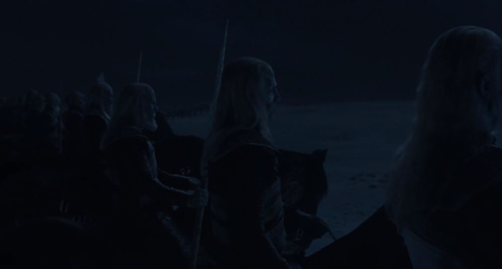 Jon lui a révélé la vérité sur ses origines et elle l'a pas super bien pris parce qu'elle a compris qu'il était l'héritier légitime (par contre elle n'en a absolument rien à foutre d'avoir ken son neveu). Jon n'a pas eu le temps de la rassurer puisqu'ils ont été interrompus par l'arrivée des…………. MARCHEURS BLANCS. ENFIN !