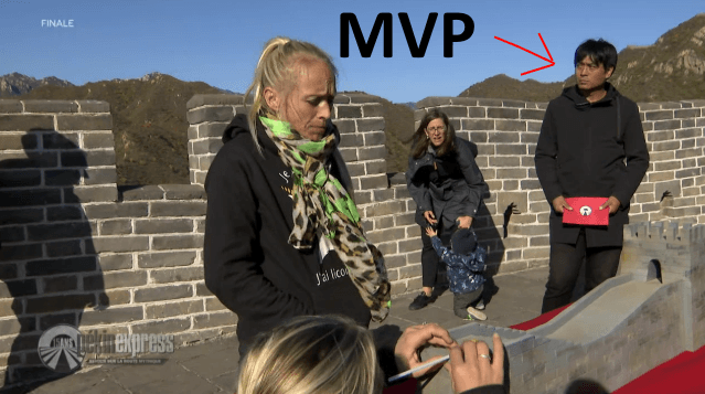 Le plus courageux de la finale ? Ce figurant chinois qui a tenu l'enveloppe rouge des heures pendant que les Lilloises galéraient sur l'épreuve des billes.