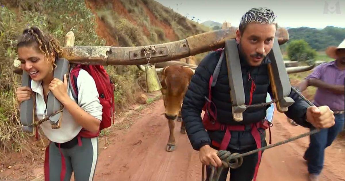 Mdr, vous l'avez ? C'est parce que les candidats doivent tirer des bœufs sur 3km, le tout relié par un joug en bois de 15 kg. Si la cloche sonne, on s'arrête une minute. Encore une fois, c'est du génie.
