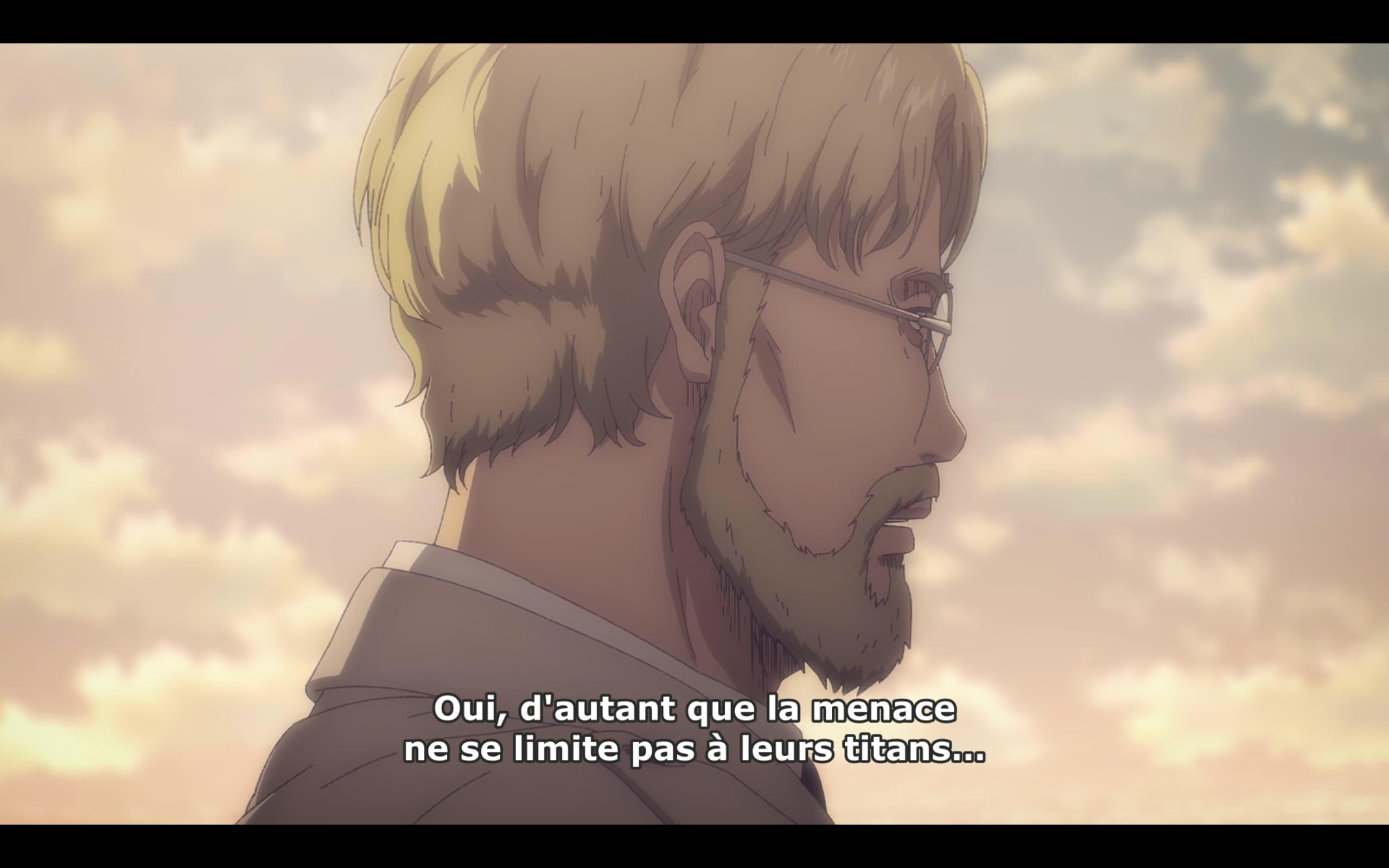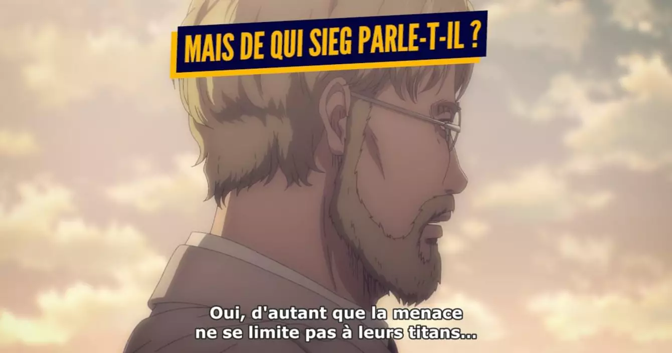 Afin de laver l'affront d'il y a 4 ans et de permettre aux Eldiens de survivre en leur donnant de la valeur auprès de Mahr, Sieg propose de repartir sur Paradis pour récupérer l'Axe. Et qui a l'Axe ? EREN JÄGER.