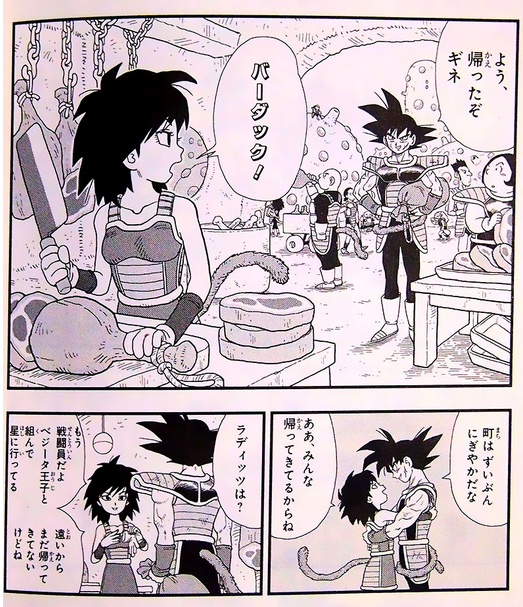 Rajoutez à ça Kakaroto (le vrai nom de Goku) et Raditz, et on se rend compte que Toriyama est littéralement obsédé par la bouffe.