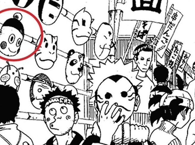 On voit un masque de Chaozu (oui on parle beaucoup de lui, on l'aime bien) dans une planche de Naruto