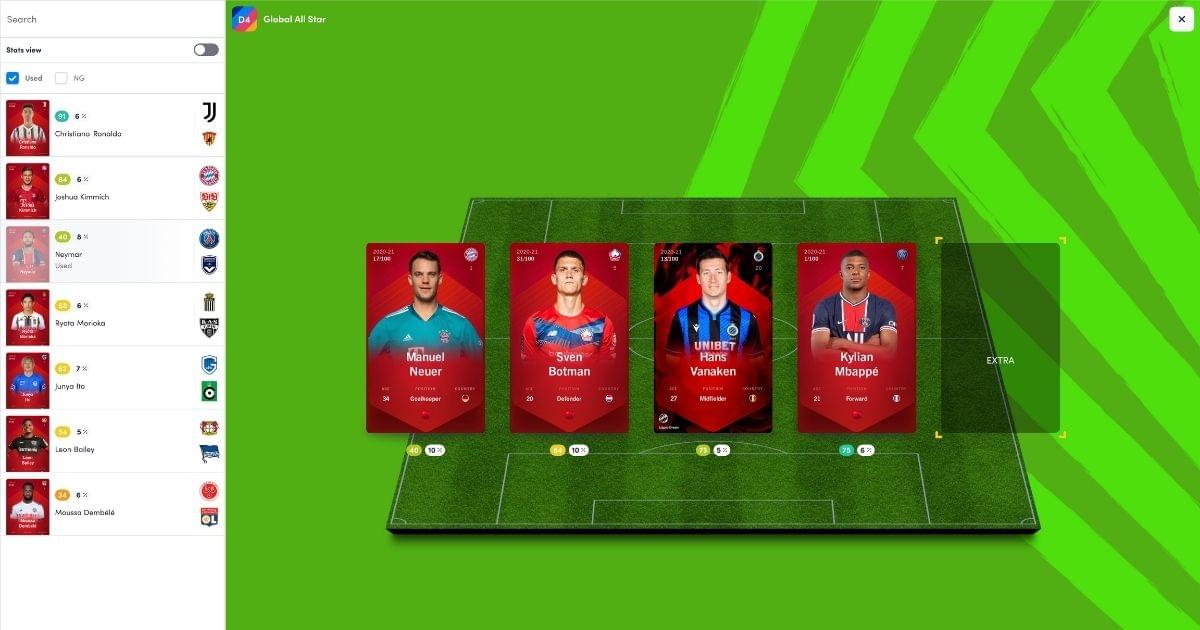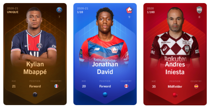 Les cartes ne peuvent pas être modifiées, dupliquées ou supprimées. Chaque carte de joueur est représentée comme un jeton non fongible (NFT) en utilisant le standard de jeton ERC-721 sur Ethereum. Alors c'est un peu technique mais ca veut dire qu'on parle pas de cartes Pokemon quoi. Chaque carte a une rareté, c'est tout l'intérêt !