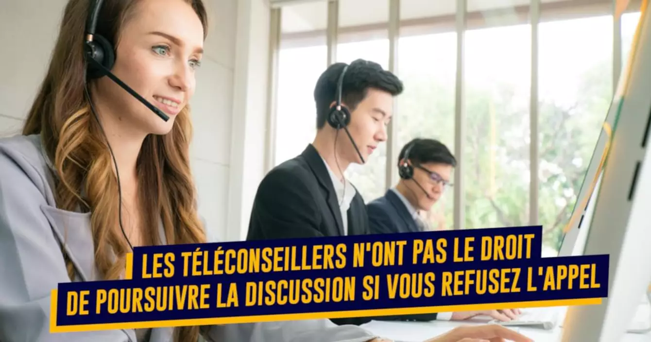 Ça parait logique, mais ça ne coûte rien de le rappeler. Si vous refusez l'appel, le téléconseiller n'a pas d'autre droit que celui de raccrocher. S'il insiste, essaie de faire durer la conversation dans le temps, tente une nouvelle approche : il est hors la loi.