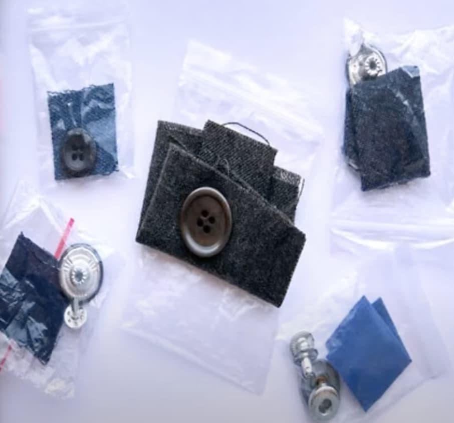 Vous avez forcément déjà eu un petit sachet étrange dans lequel on trouve un morceau de tissu et un bouton en achetant un vêtement. On pourrait penser assez justement que comme le bouton de rechange le petit carré de tissu servirait à rapiécer le vêtement, mais en fait non, c'est juste pour essayer différents lavages et éviter de bousiller directement cette superbe veste à 200 balles dès la première machine.