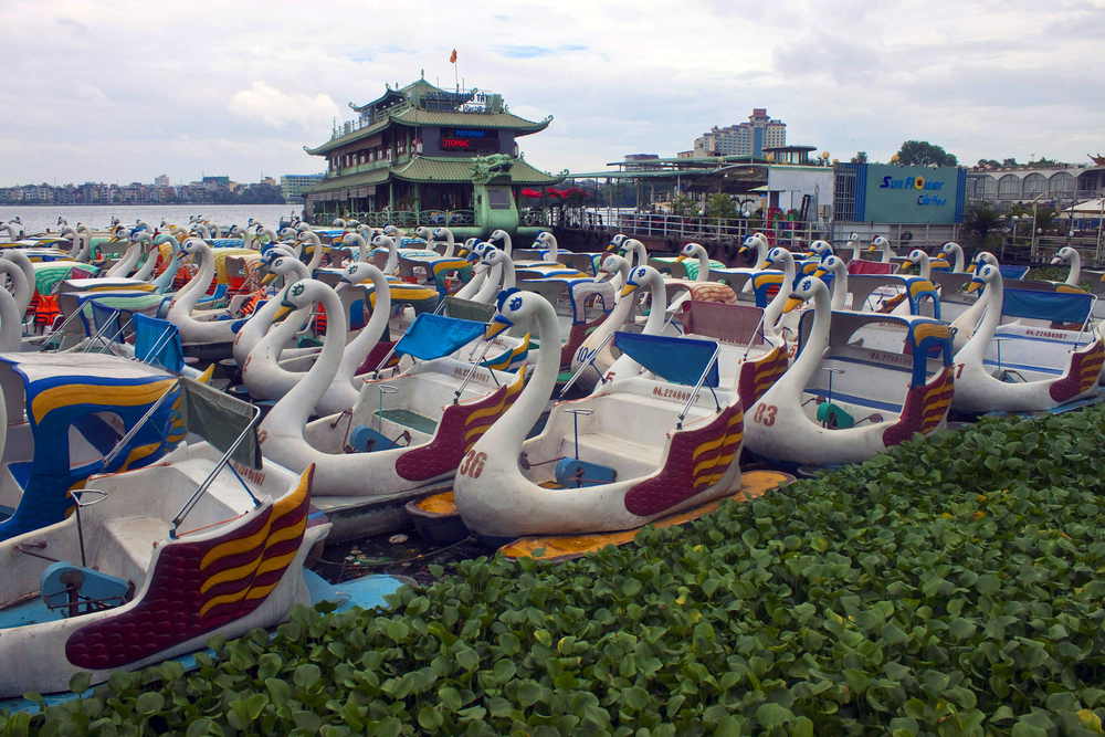 Faire du pédalo sur le lac Trùc Bach