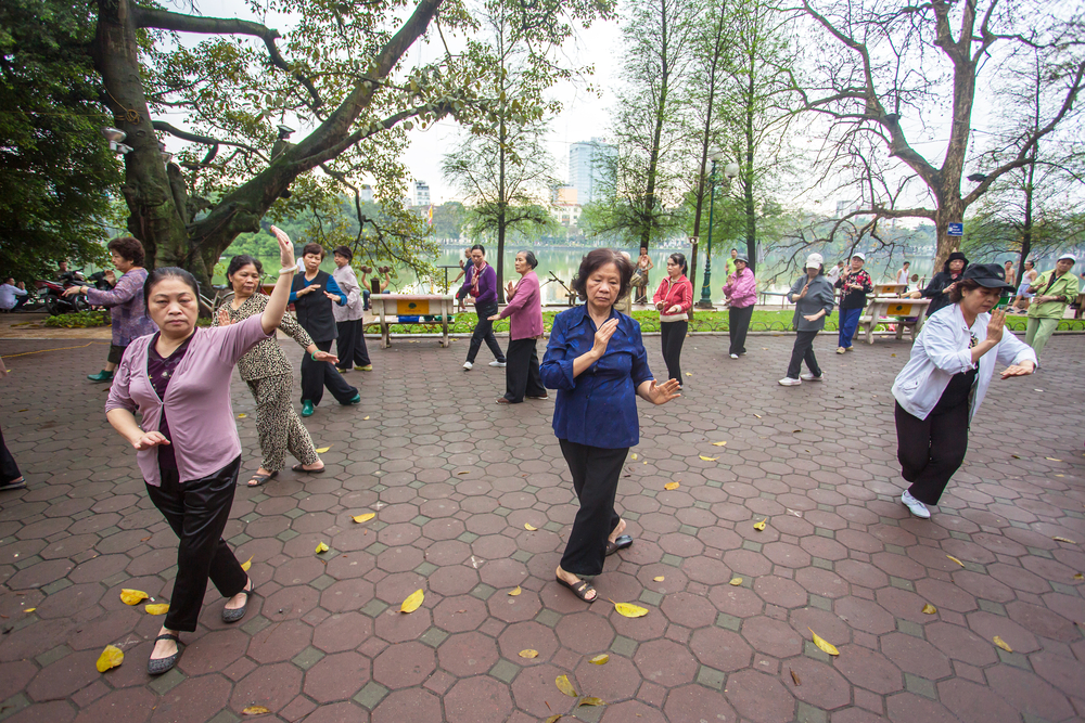 Participer à une cession de gymnastique matinale au bord du lac Hoan Kiem