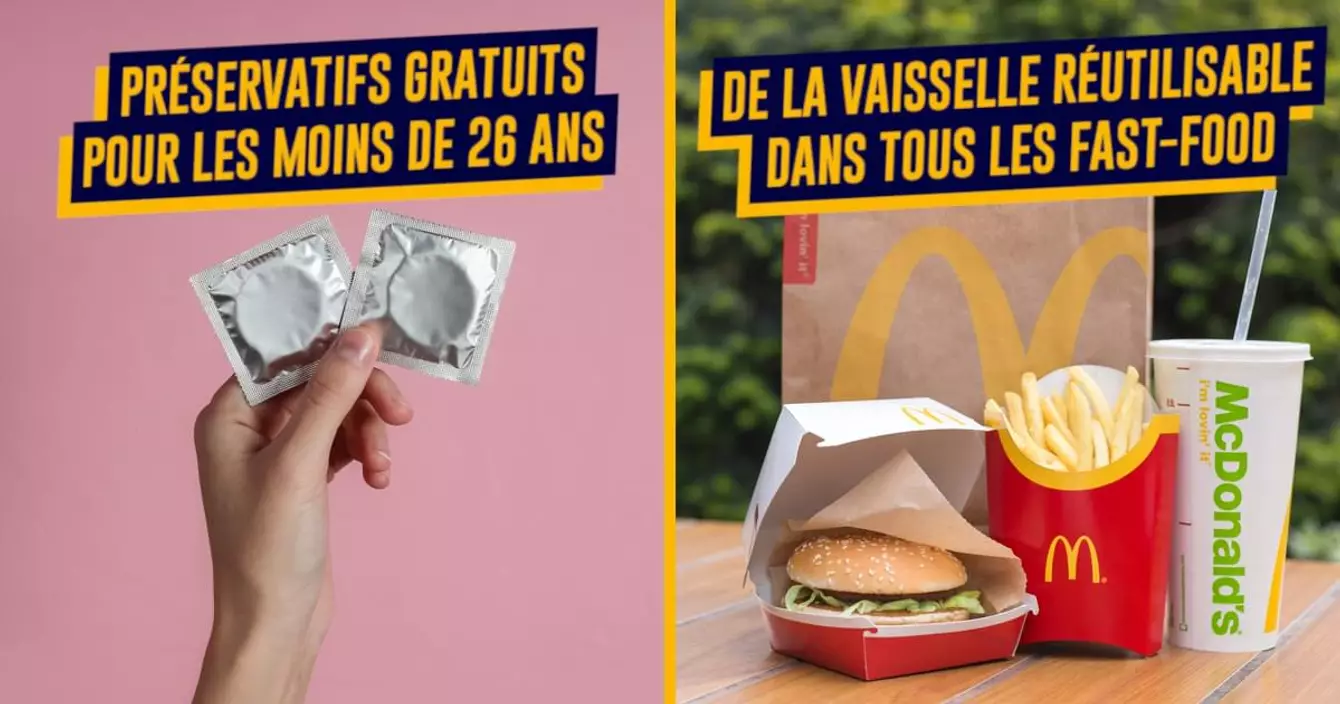 Let's goooo la fête du slip ! Emmanuel Macron l'avait annoncé au début du mois de décembre : dès le 1er janvier, les préservatifs masculins seront gratuits pour les moins de 26 ans. Si vous êtes vieux, ou si vous cherchez des préservatifs féminins, il faudra raquer. Non mais il ne faut pas dec non plus ! On attend aussi avec impatiente la gratuité des protections hygiéniques.