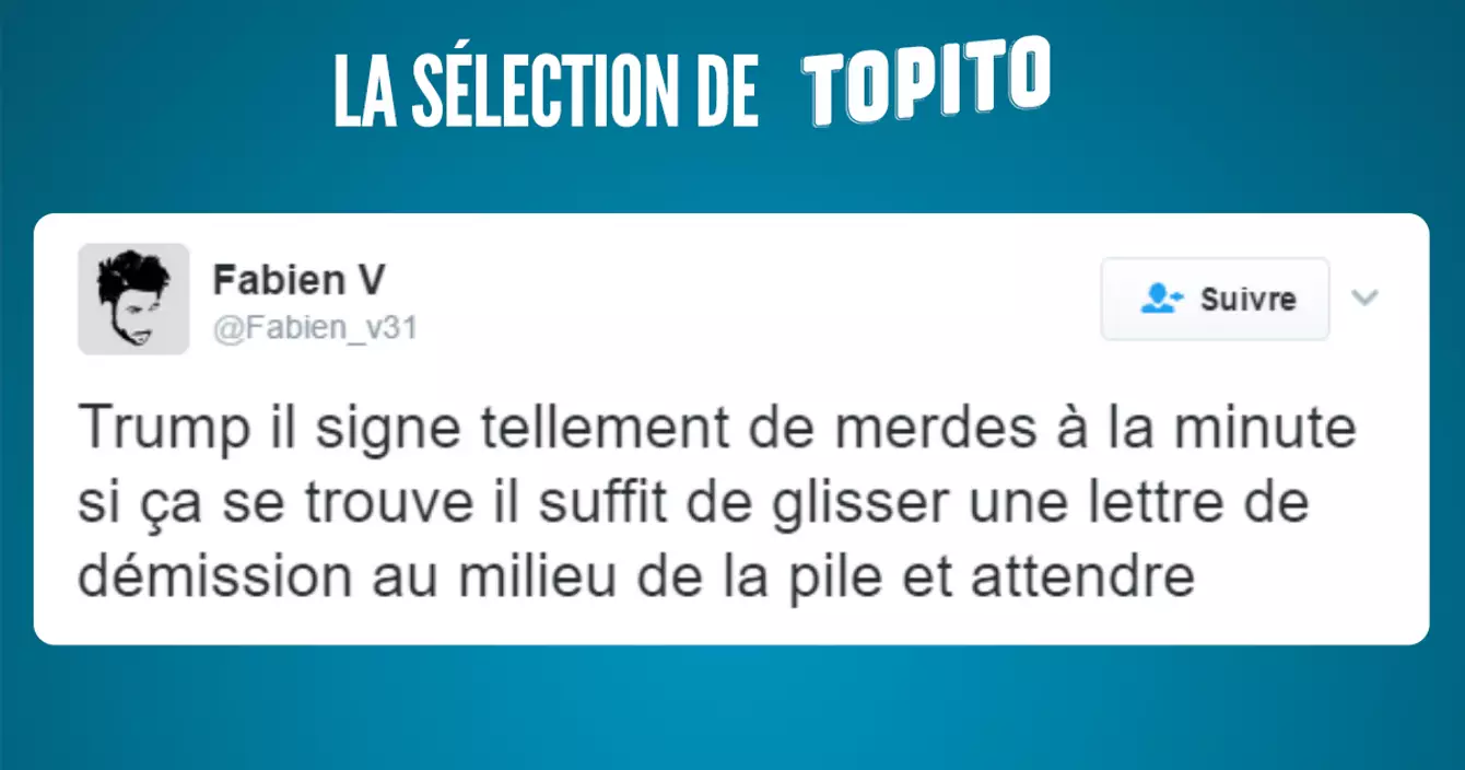 Trump il signe tellement de merdes à la minute si ça se trouve il suffit de glisser une lettre de démission au milieu de la pile et attendre