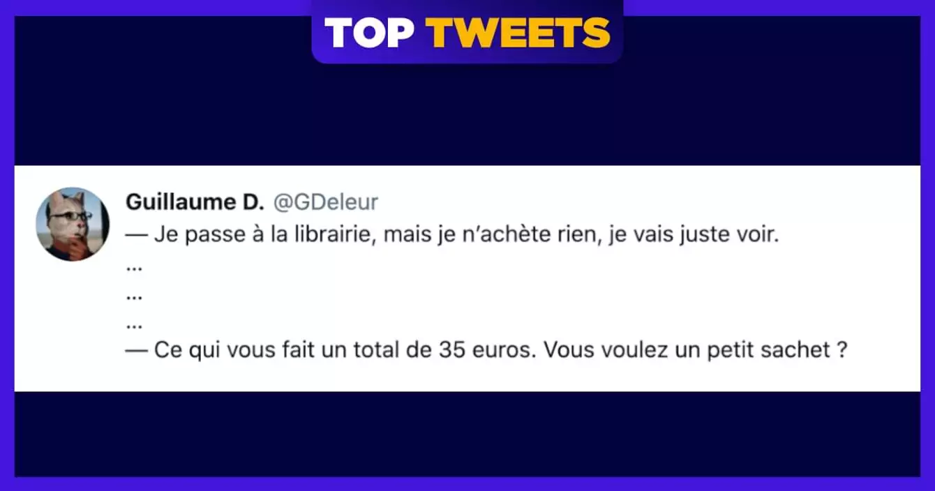 Salut les ptits potes, comment vous allez en ce jour de réouverture des commerces ? J'imagine que tout le monde est prêt à dévaliser les librairies parce que vu le nombre de personnes outrées par leur fermeture, on espère qu'il y aura du monde pour les soutenir. Comme je suis une grande fan de bons bouquins, je vous propose aujourd'hui un top tweets consacré aux librairies, ce lieu magique où tu rentres « juste pour regarder » et où tu sors avec les bras chargés et le portefeuille allégé.