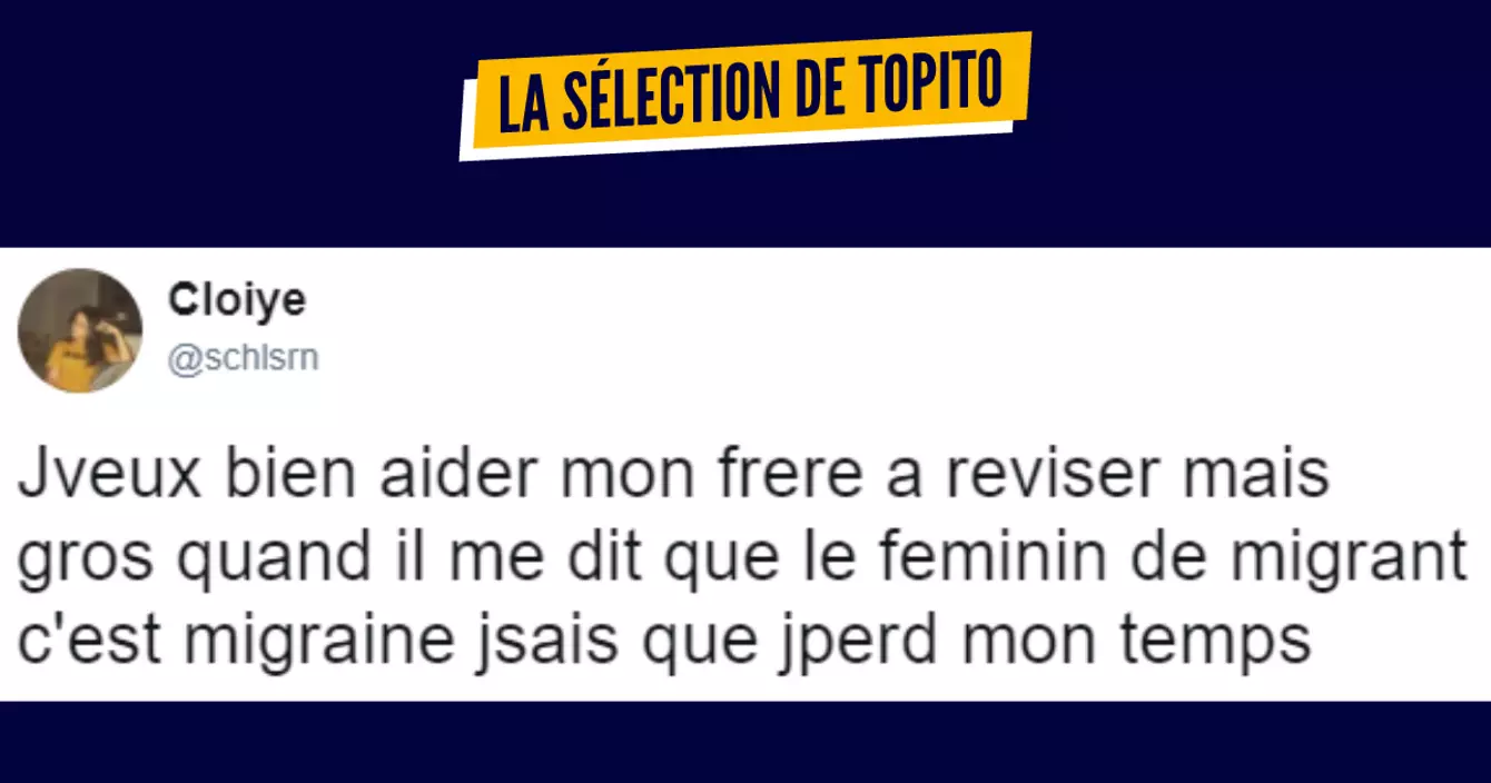 Bonsoir les kids, comme d'habitude on repart sur une nouvelle semaine basée sur le signe du plaisir et du rire avec un réveil à 7h du matin et encore 3g de sang dans l'alcool à cause de la soirée de samedi soir. Du coup voici le top des tweets les plus drôles de la semaine dernière pour commencer en douceur.