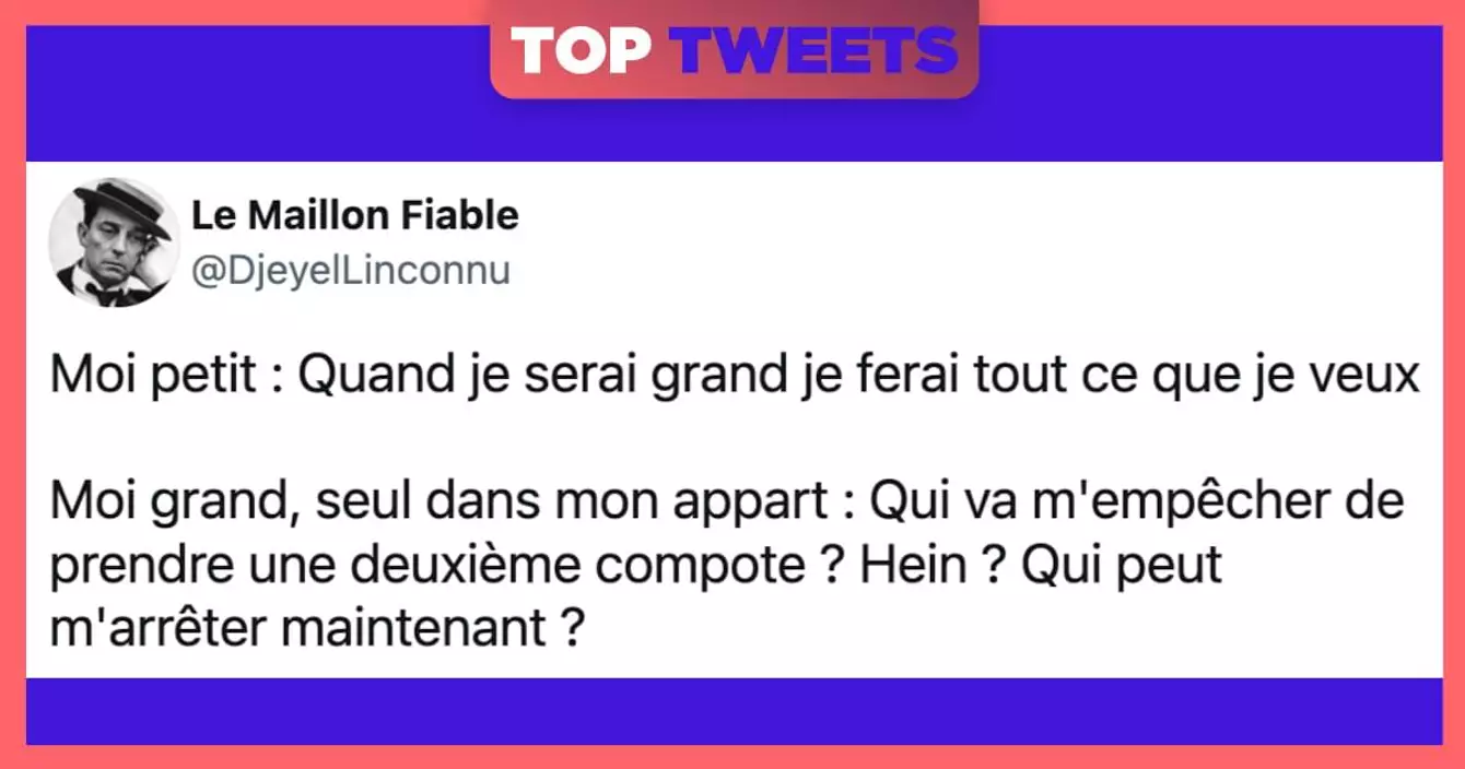 Je pense qu'on devrait passer notre vie à manger de la compote car c'est un aliment facile à avaler qui ne nécessite pas de mâcher ni de faire le moindre effort. Afin de rendre hommage à la compote, je vous ai fait un top tweet. Est-ce que je mérite une médaille ? Assurément.