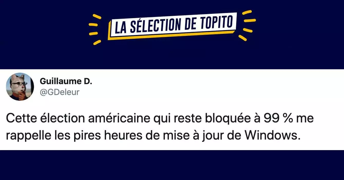 Salut les ptits potes, c'est de nouveau moi pour le neuvième jour des tweets du reconfinement (vous commencez à connaitre la chanson). Aujourd'hui, on attend toujours les résultats des élections, on crache sur les candidats de Koh Lanta et on s'amuse de notre vie de confinés. Passez un bon week-end et sortez un max de chez vous (humour lol).