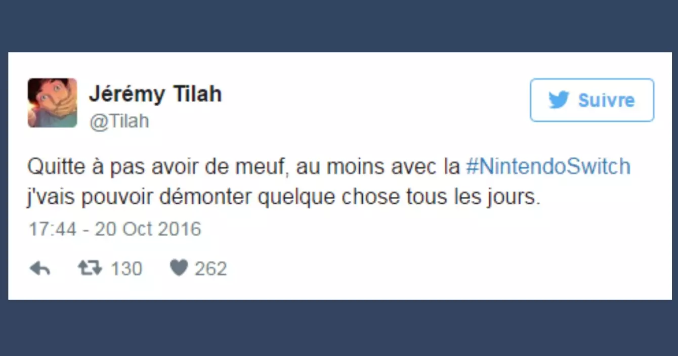 « Nintendo Switch : parfait quand tu veux juste jouer à Mario tranquille mais que tes voisins te mettent la pression pour que tu passes sur leur rooftop. »