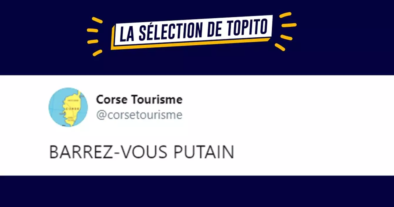 Allez c'est parti pour la petite compilation de tweets qui ne mange pas de pain, et cette semaine, c'est l'office du tourisme Corse qui entre en scène. Voici 20 tweets de qualité moyenne à supérieure, sans couenne, ni colorant ni conservateur sur ces ce compte magique qui adore les touristes.
